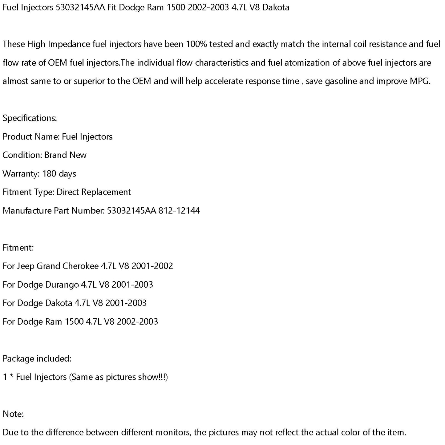 Fuel Injectors 53032145AA Fit Dodge Ram 1500 2002-2003 4.7L V8 Dakota