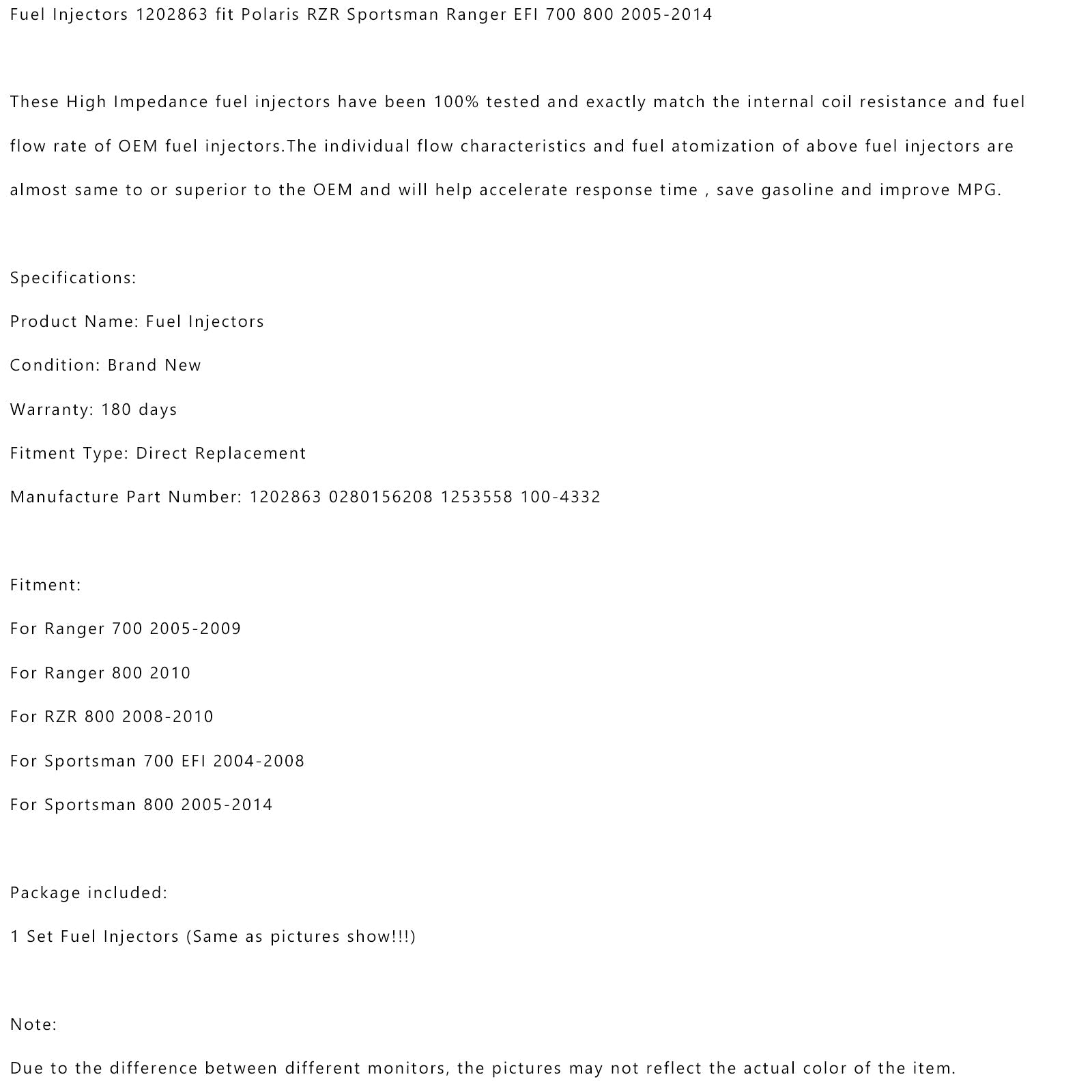 Fuel Injectors 1202863 fit For Polaris RZR Sportsman For Ranger EFI 700 800 2005-2014