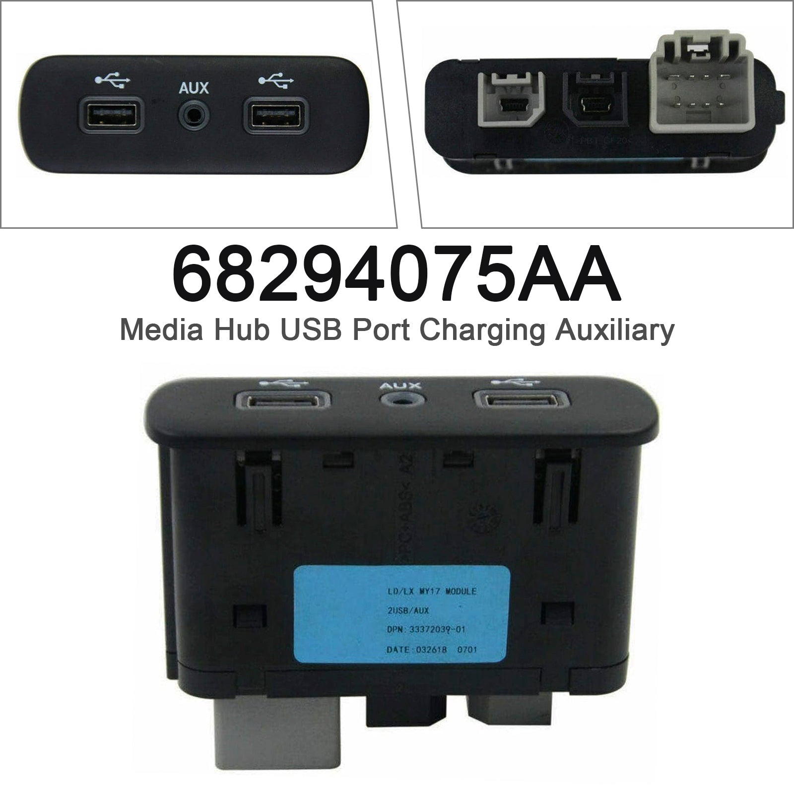 Media Hub USB Port Charging Auxiliary for Chrysler Dodge 2017-2023 68294075AA