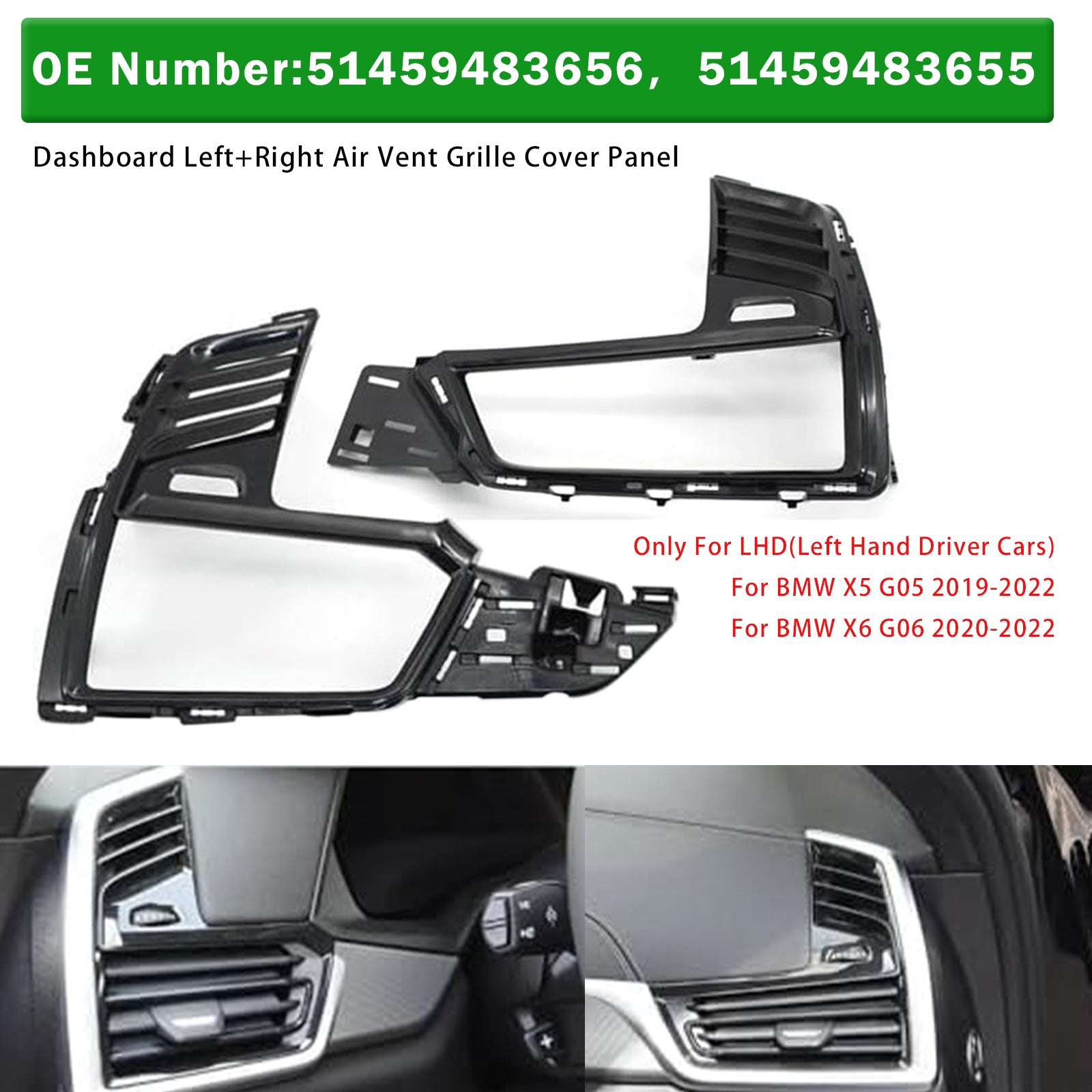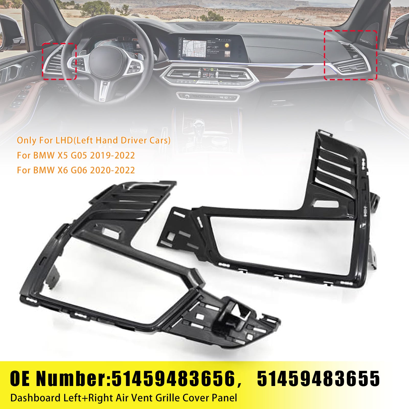 Dashboard Left+Right Air Vent Grille Cover Panel 51459483656 51459483655 For BMW X5 X6 2019-2022