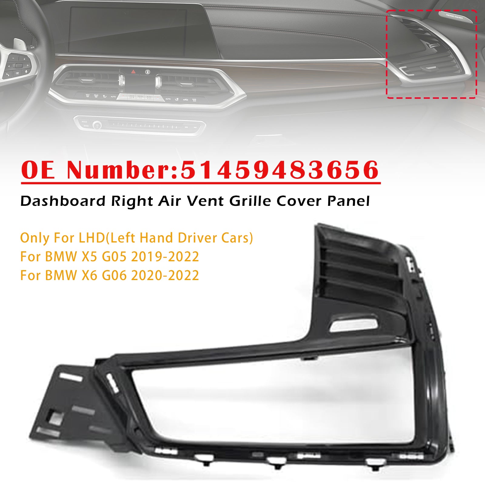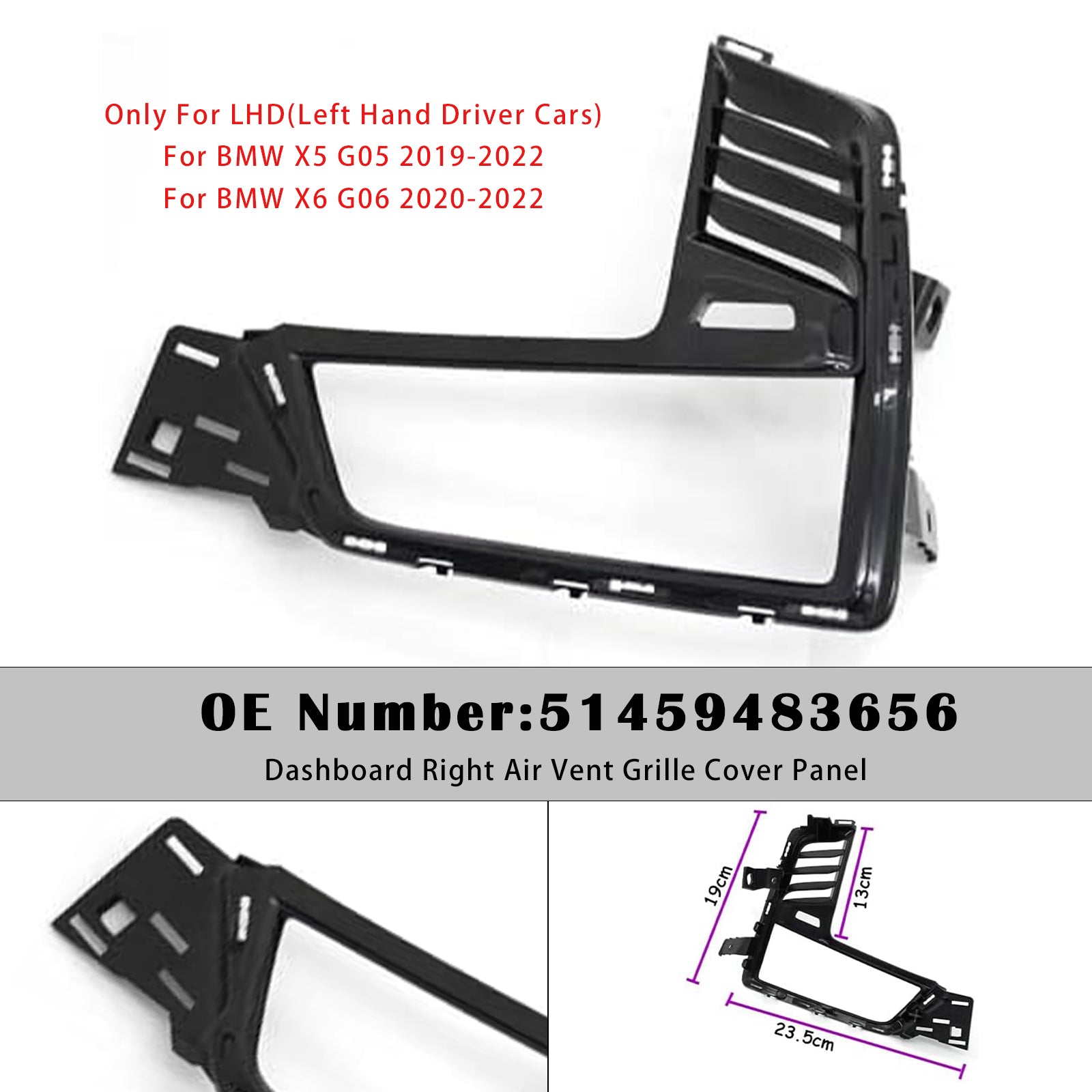 Dashboard Right Air Vent Grille Cover Panel 51459483656 For BMW X5 X6 2019-2022