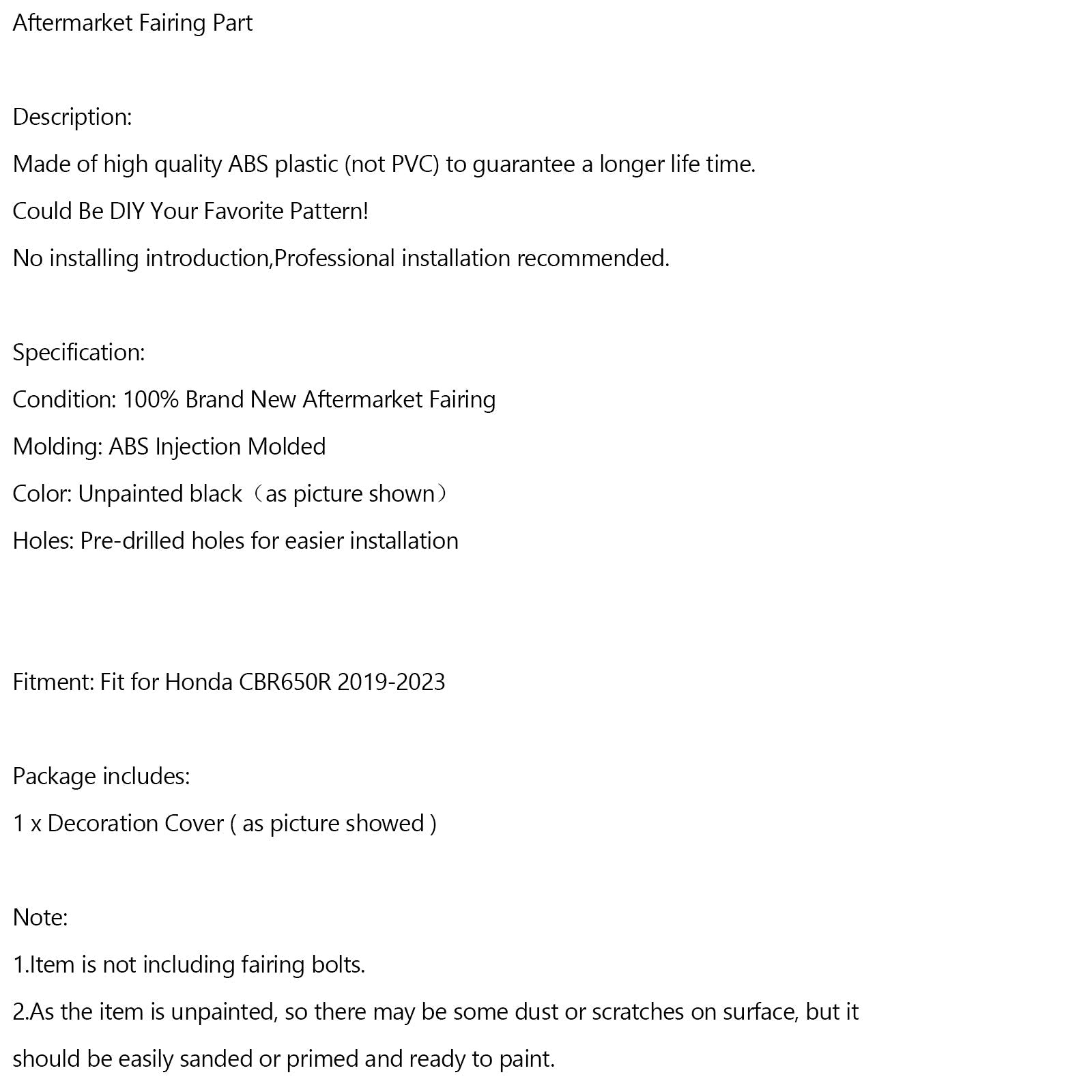 Condition: 100% Brand New Aftermarket Fairing