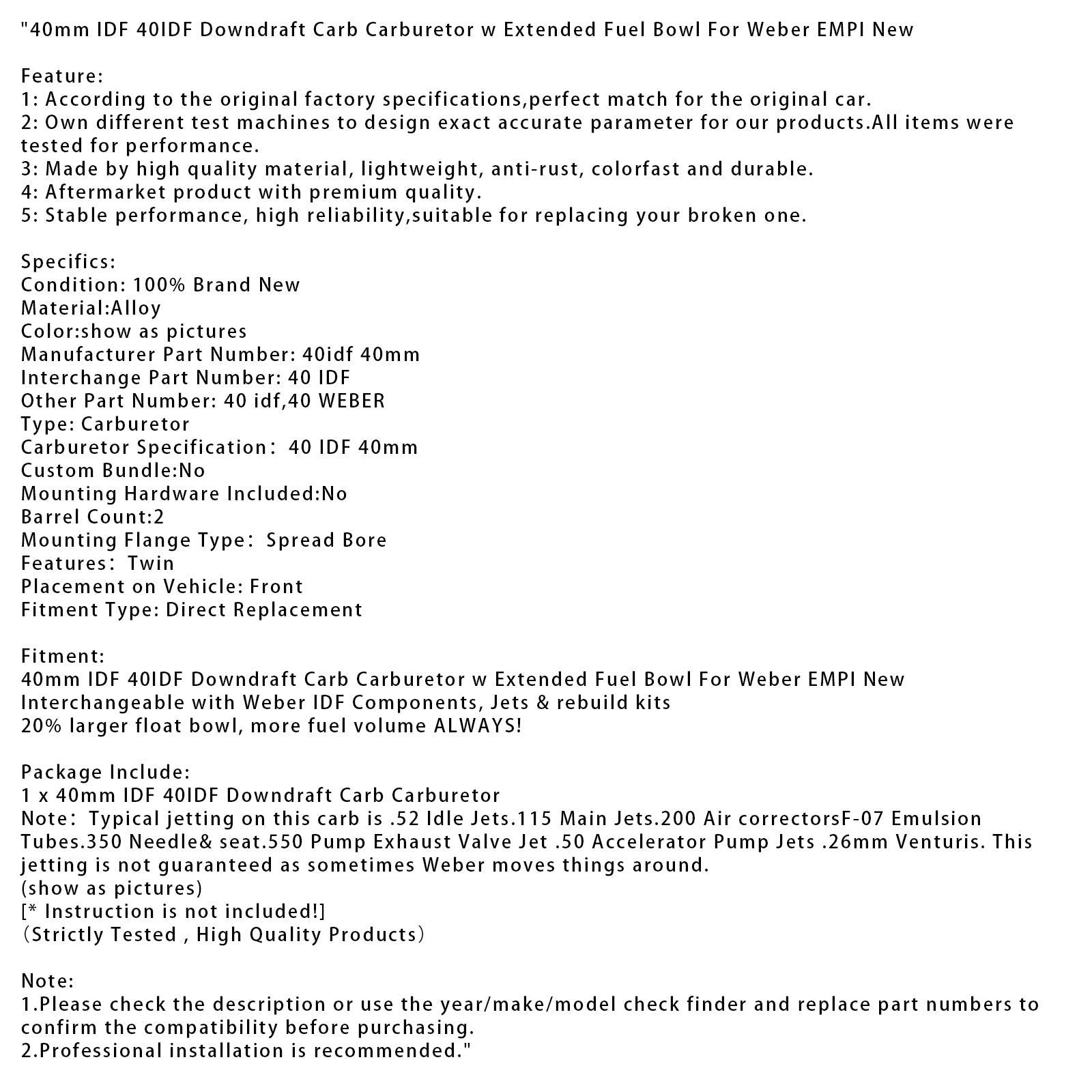 Manufacturer Part Number: 40idf 40mm