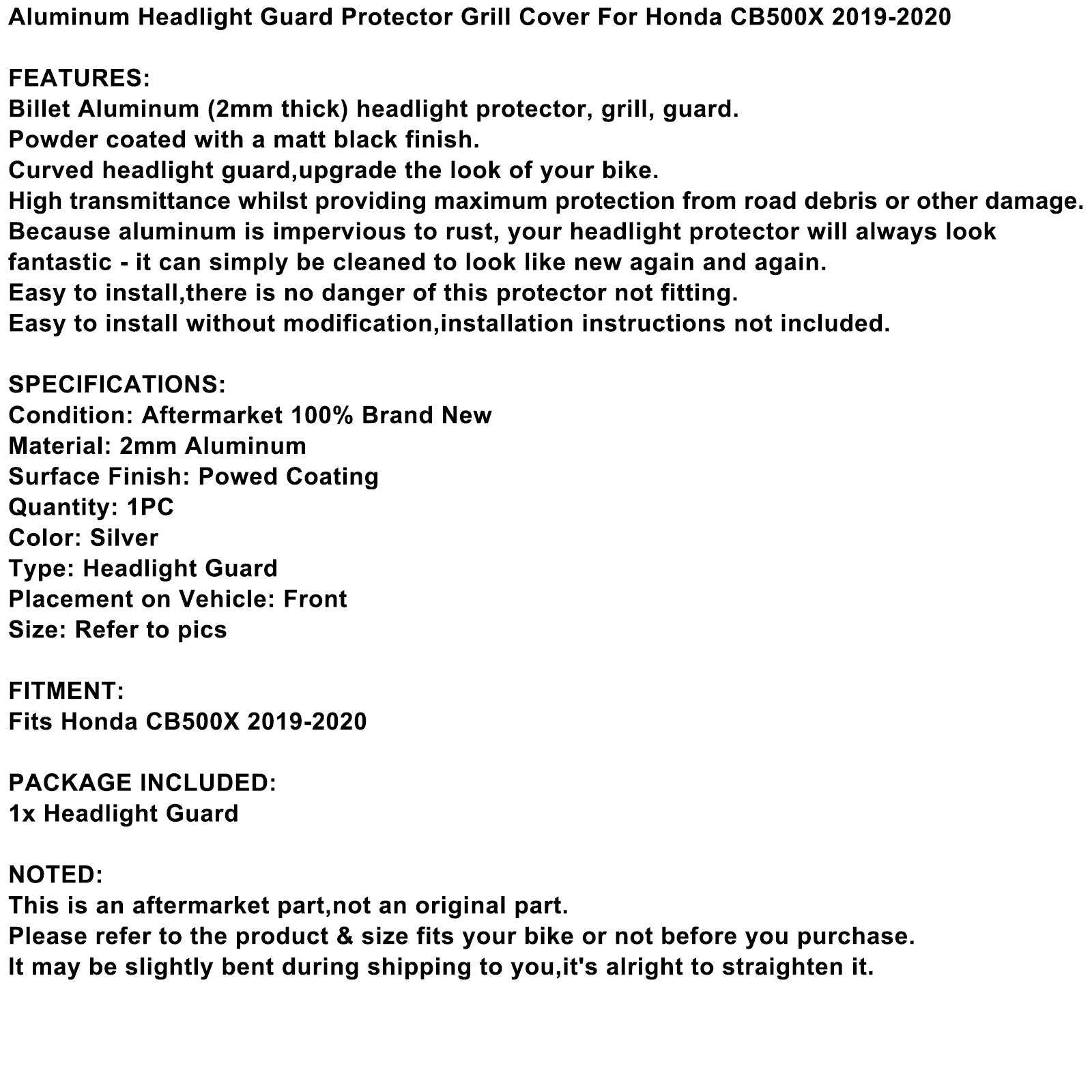Aluminum Headlight Guard Cover Protector Silver For Honda Cb500X 2019-2020