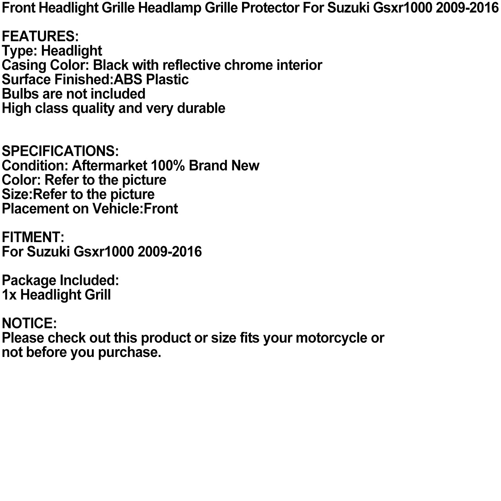 Front Headlight Grille Headlamp Grille Protector For Suzuki Gsxr1000 2009-2016