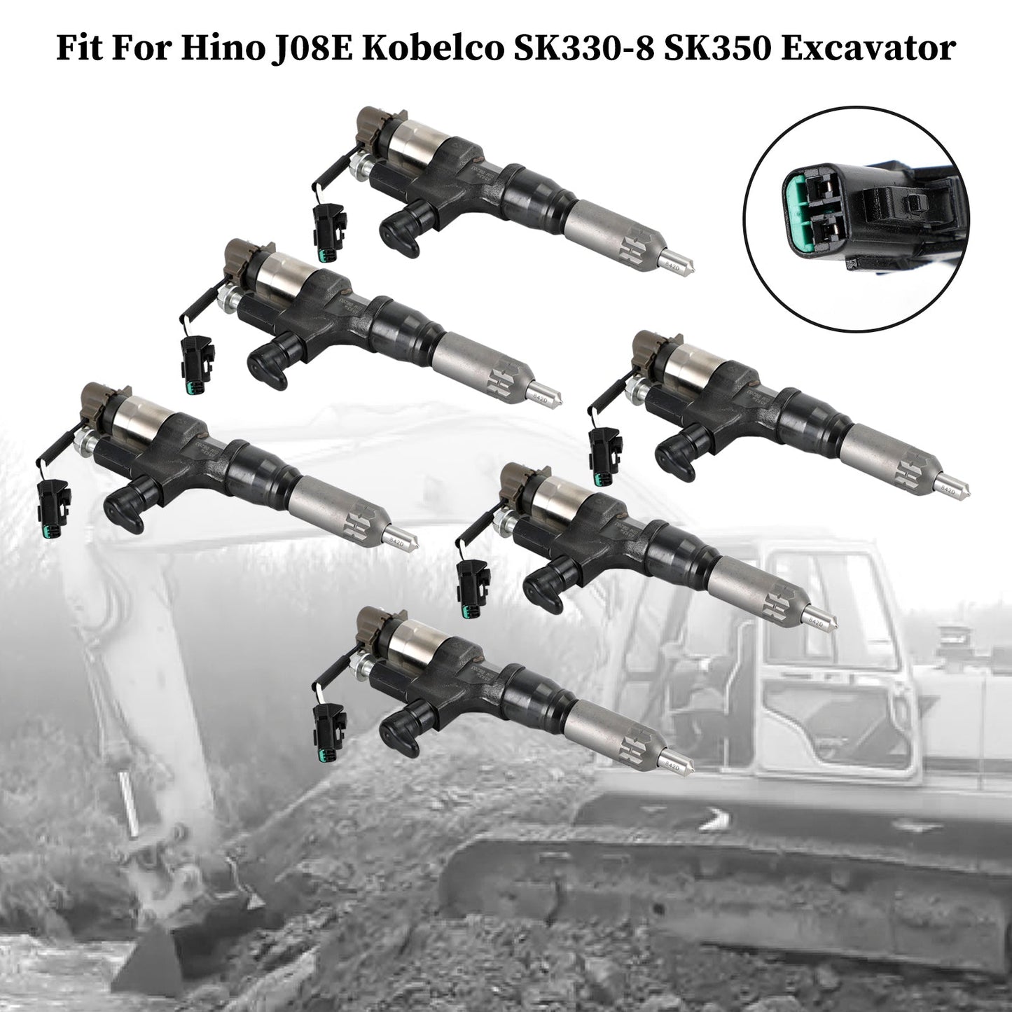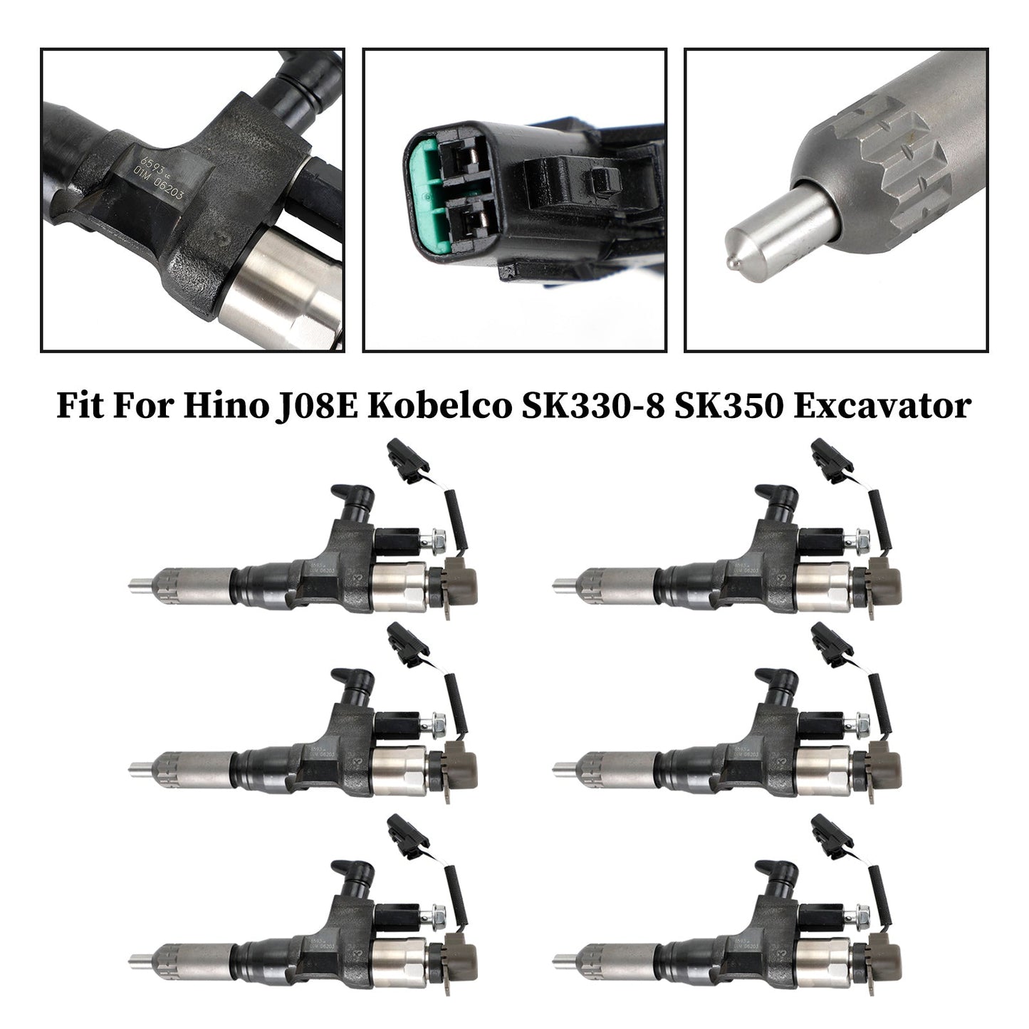 Hino J08E Kobelco SK330-8 SK350 Excavator 6PCS Fuel Injectors 095000-6593 CB84034501S 23670-E0010